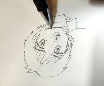 目の真ん中に横のアタリ線を入れた人が目が描きやすい人もいれば、鼻の位置に入れた方が描きやすい人もいます。皆さんはキャラの顔を描く時、どの位置に横のアタリ線を入れた方が描きやすいでしょうか?描きながら考えてみましょう。