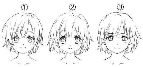 まず、髪の毛の描き方ですが、大体、下の3つに分かれるかと思いマス。