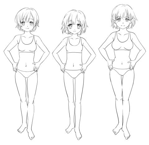 上にある3つの女の子のキャラクターはデフォルメ(誇張)が違います。皆それぞれのかわいらしさ、美しさがあると思います。