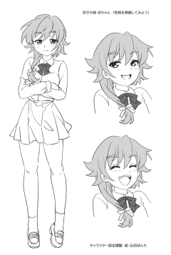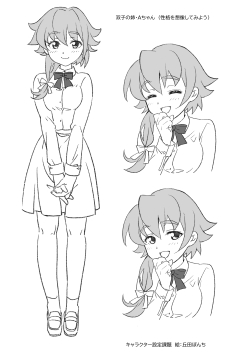 これは、性格の違う双子のキャラクターを創ってみようという課題です。上の画像が妹で、下の画像が姉という設定で、2人とも同じ制服を着た高校生を描いてみました。
