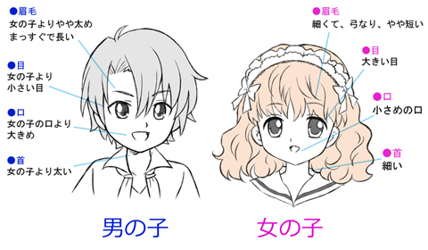 男キャラでも、目の大きい女の子みたいな人もいるし、女キャラでも、目の小さい男の子っぽい人もいる…。男キャラと女キャラの書き方の違いってなんだろう?そんな風に思ったことはないですか?
