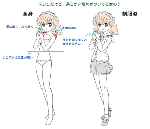 よくある女の子の体系はこんな感じが多いかな。標準体型よりちょっと痩せた感じの身体つき。