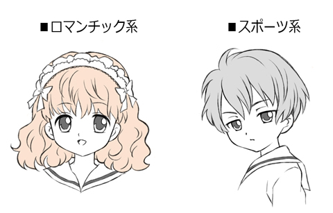 キャラの顔を描き分けるコツは、簡単に言うと、キャラクターの性格が見た目で想像できるように描くということです。キャラクターだって生きてる人間と同じ(と思ってください)なのだから、