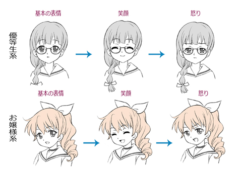 表情はキャラクターの性格によって描きわけるとGOOD!