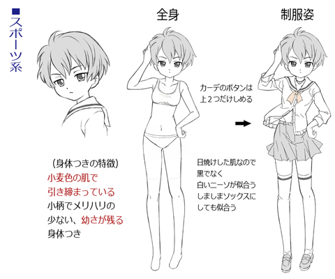 スポーツ系の子は男っぽいってわけじゃなくて、まだ成長してない子っていうか…背がちょっと低めのツンデレ風の子かなぁ。(私のイメージ)