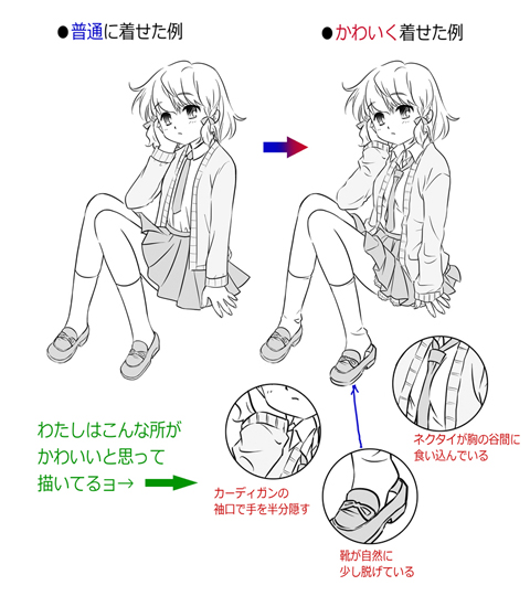 服をかわいく描くには、着こなしを考えるのが大切☆