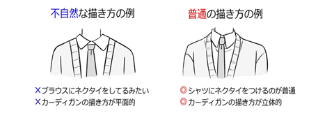シャツなのかブラウスなのか、襟をちゃんと意識して描くといいかも…☆