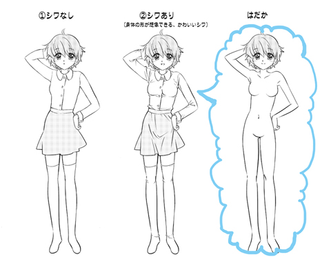 キャラにかわいい服を着せればかわいくなる……という単純なことでなく、たとえ平凡な服であっても『しわの描き方』を変えれば、かわいく見せることができるかと思います