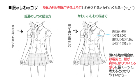 服のしわの描き方、かわいらしく服を描くコツは、身体の形が想像できるように描くことです(^○^)