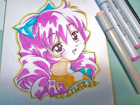 今回は「色紙にコピックでキャラを描く」というテーマで、失敗しにくい下書き、ペン入れ、目や肌、髪の色塗りと、簡単にきれいに見える描き方をやりたいと思います。